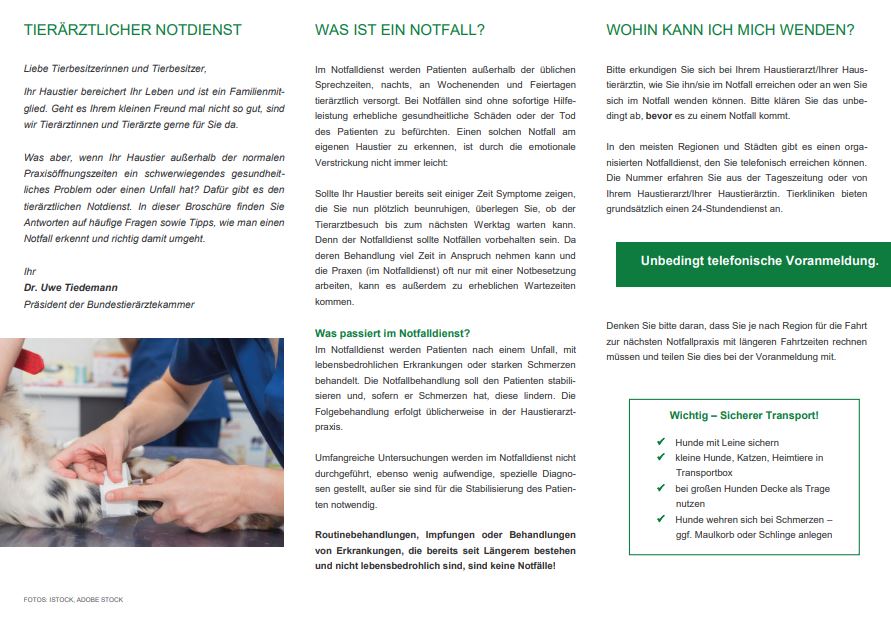 Notdienst-Flyer Schnelle Hilfe für Hund, Katze und Co. BpT